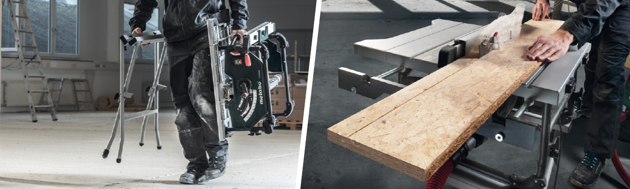 Metabo bietet neun Tischkreissägen mit drei unterschiedlichen Sägeblattdurchmessern an: 216 mm, 254 mm und 315 mm. Dies ist auch in der Typenbezeichnung verankert zur Orientierung bei der Auswahl. Wenn Sie auf geringes Gewicht und eine kompakte Bauweise Wert legen, sind die Modelle mit 216 und 254 im Namen richtig für Sie. Die leichteste Säge im Programm ist die Tischkreissäge TS 216 Floor. Sie ist mit etwas mehr als 20 kg für den einhändigen Transport geeignet und konzipiert für Bodenverlegearbeiten. Andere Tischkreissägen dieser Klasse sind mit einer Trolleyfunktion ausgestattet und stehen sowohl als netzbetriebene Sägen als auch als Akku-Tischkreissägen zur Verfügung. Für besonders kraftintensive Sägearbeiten sind die größeren Tischkreissägen mit einem 315-mm-Sägeblatt eine gute Wahl.